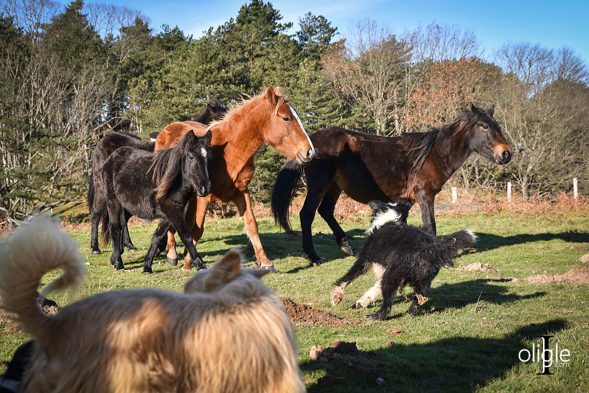 Des pottoks et des vaches, brebis, chiens et un vautour.